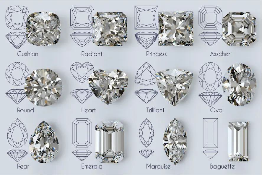 カットは、大きく分けてブリリアントカット、ステップカット、ミックスカットとその他のファンシーシェイプカットの4種類に分けられます。 代表的なものは、輝きを最大限に引き出す「ラウンドブリリアントカット」です。 ミックスカットは、ブリリアントカットの輝きとステップカットの独特の雰囲気を両方持った「プリンセスカット」が有名です。 ステップカットにはエレガントな「エメラルドカット」「スクエアカット」、「バケットカット」などがあり、これら以外は「ファンシーシェイプカット」と呼ばれています。