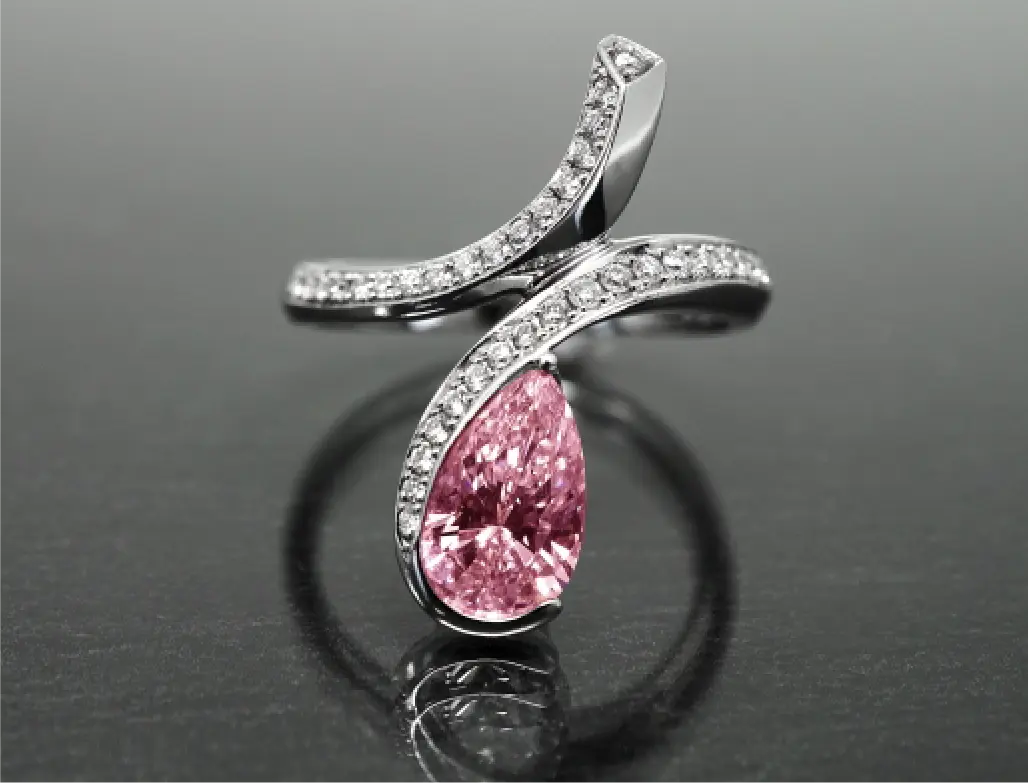 比較的産出量が多くてカラーダイヤモンドの中ではあまり高価格ではないものの、彩度が高く鮮やかな